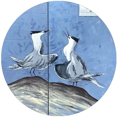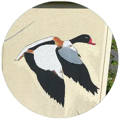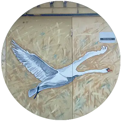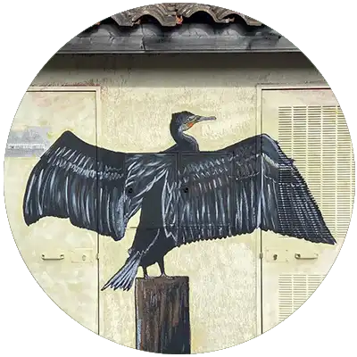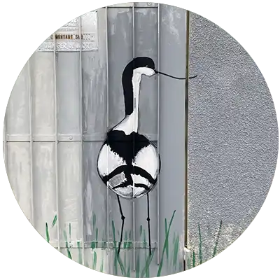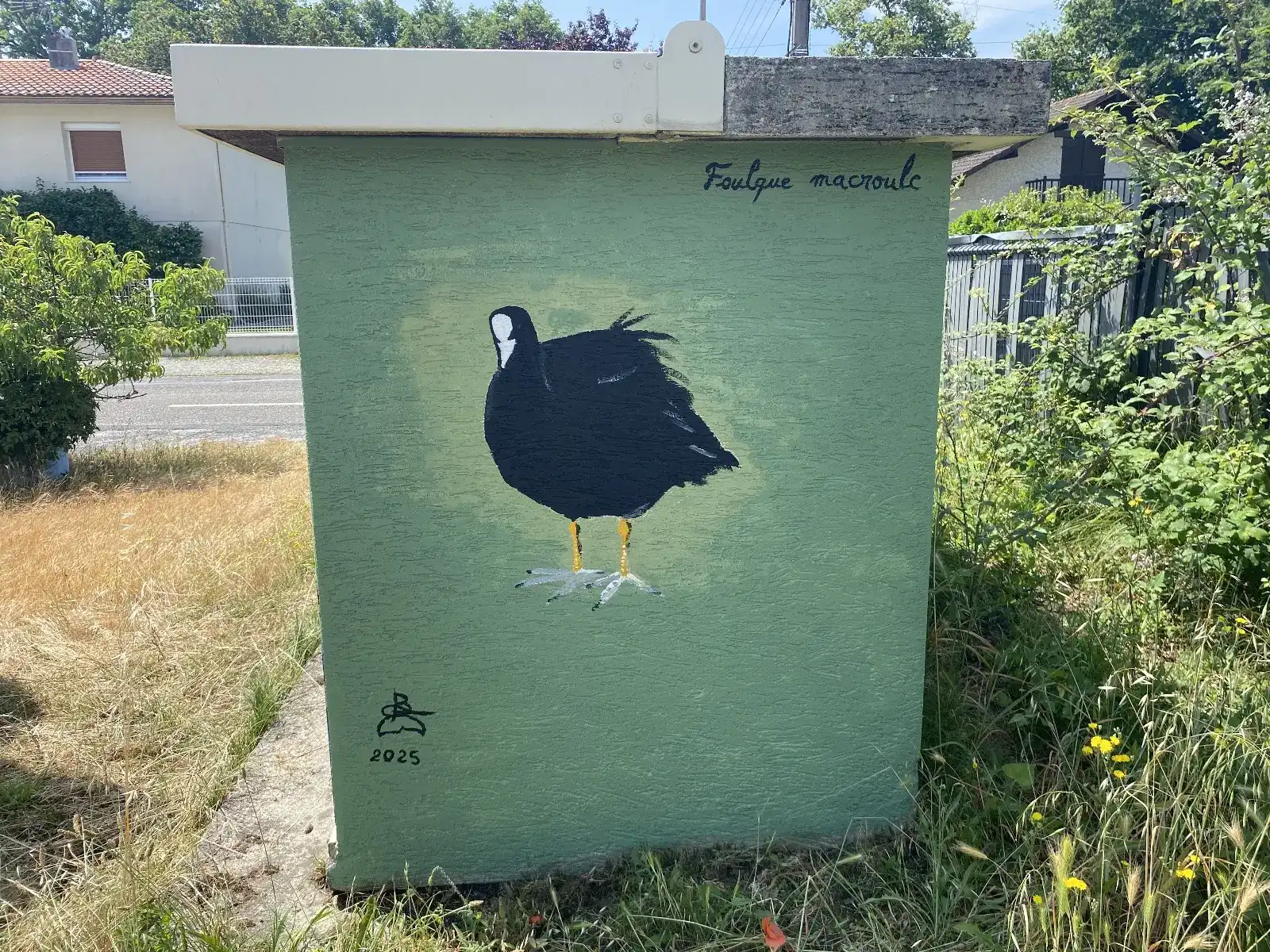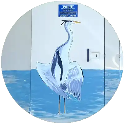 Souvent perçus comme de simples locaux techniques, les transformateurs électriques * s’imposent dans le paysage urbain par leur aspect fonctionnel et peu esthétique. Sur le Bassin d’Arcachon, Audrey Beauduc, artiste peintre muraliste, leur redonne vie grâce à ses fresques colorées. Inspirée par la nature et les oiseaux, elle transforme ces bâtis en véritables supports artistiques et pédagogiques, qui embellissent la ville tout en éveillant la curiosité des habitants et des touristes. Vous découvrirez les oiseaux vivants dans notre ville d’Audenge à travers ses oeuvres. Pas à pas vous apprendrez à regarder la faune sauvage précieuse au Bassin d’Arcachon.
